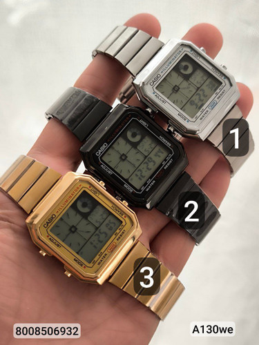 ساعت مردانه جهان نما کاسیو A130WE ضد اب استخری رنگ ثابت الارام دار لایت دار هک مارک روی قفل