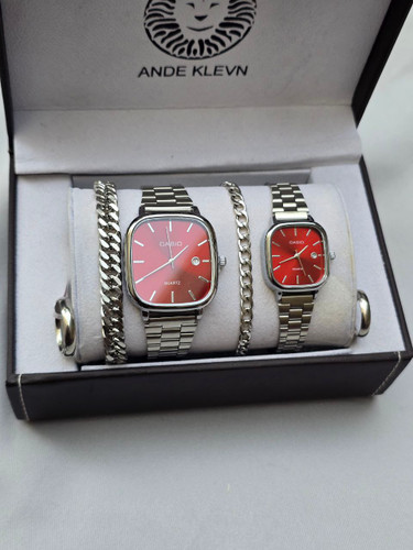 ست ساعت زنانه و مردانه کاسیو بند استیل شامل دو عدد ساعت و دوعدد دستبند