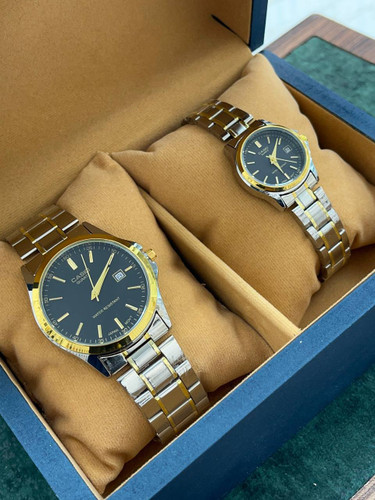 ساعت شیک کاسیو ست زنانه و مردانه دارای روزشمار استیل توپر و سنگین
