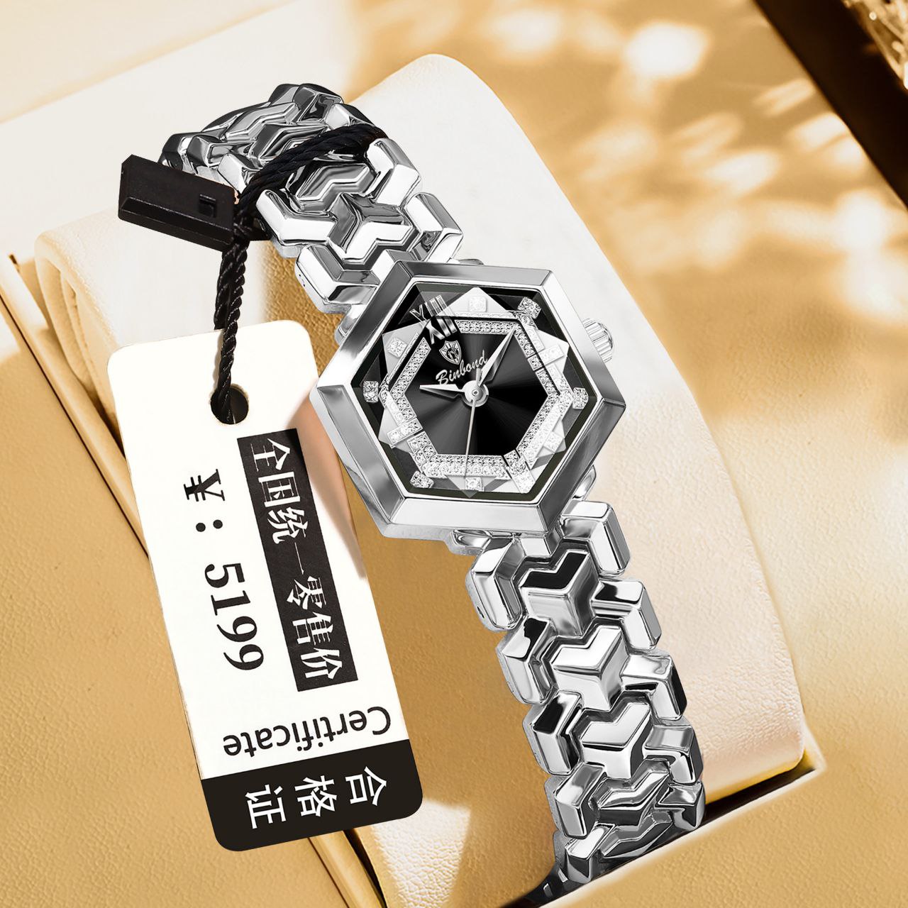 بین باند مدلی نو مناسب برای خانمها بندفولاد ضدزنگ طرح الماس شیشه معدنی الماس ضدخش صفحه نمایش آنالوگ قفل دستبندی موتور کوارتز