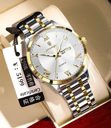 ساعت مردانه پوداگار قطر 42 میلی متر رنگ ثاب قاب استیل بند استیل ایام هفته دارد روز شمار دارد شیشه ضدخشbrand poedagar model 958