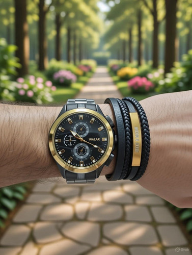 🌈ست مردانه ساعت مارک والار ✅طرح کرنو ❌بند استیل ✅به همراه دستبند پلاک دار چهار لاین ✅بهترین گزینه برای کادو و هدیه 🎁به همراه جعبه کادویی