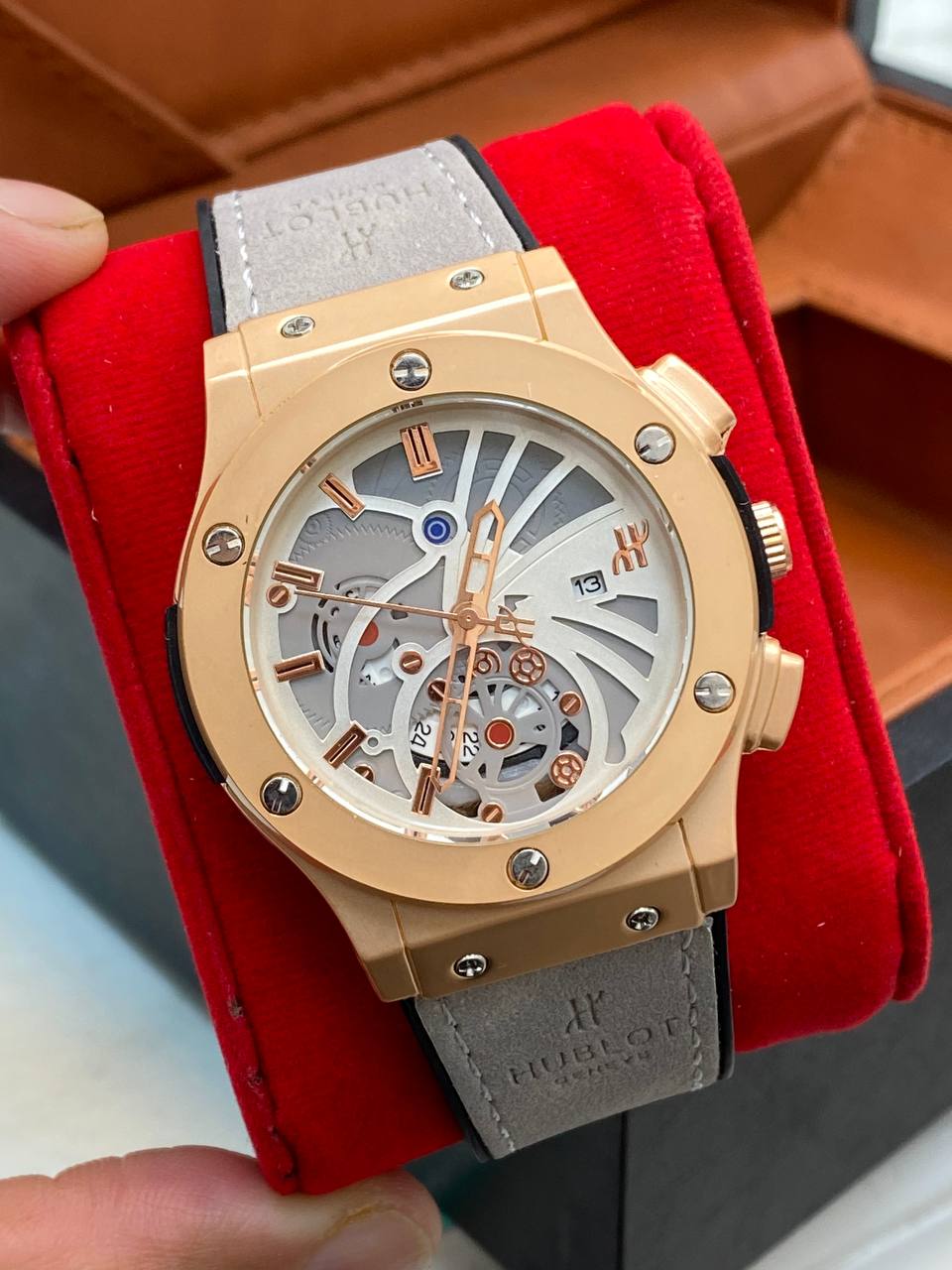 ساعت مردانه هابلوت طرح اتومات جدید تقویم دار رنگ بندی متنوع قفل طرح اصلی و کلیپسی