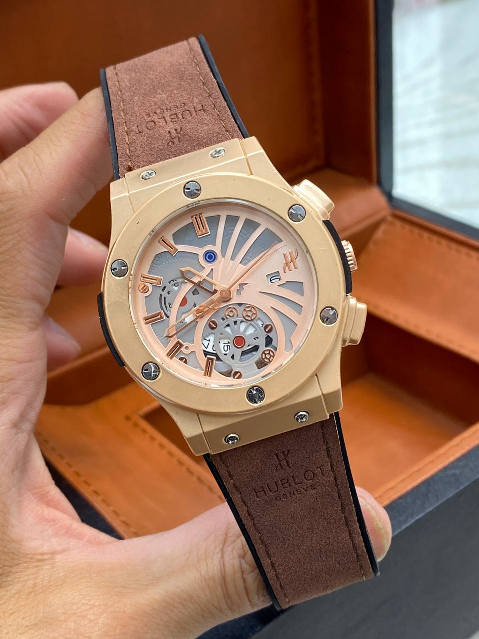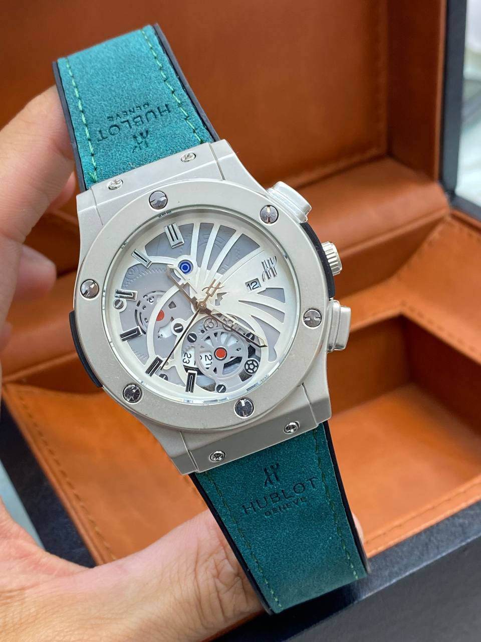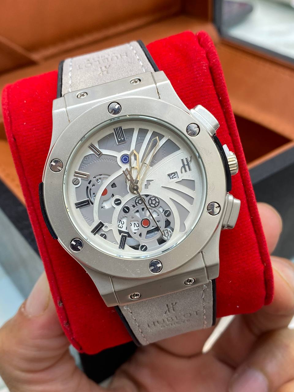 ساعت مردانه هابلوت طرح اسکلتون تقویم دار رنگ بندی متنوع قفل طرح اصلی و کلیپسی