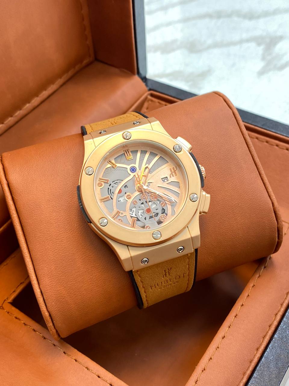 ساعت مردانه هابلوت طرح اتومات جدید تقویم دار قفل طرح اصلی و کلیپسی
