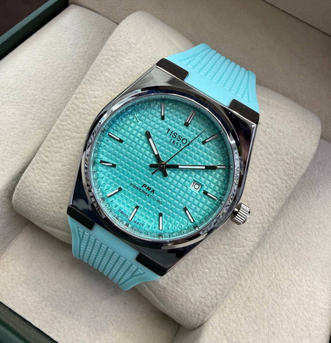 ساعت مردانه تیسوت prx تاریخدار قفل پراونه ای شب نما طرح اصلی کیفیت عالی در رنگهای شاد