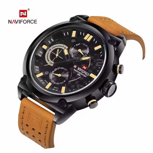 ساعت مردانه نوویفورس brand naviforce کرنو گراف اورجینال قطر 45 میلی متر رنگ ثاب قاب استیل بند چرم شیشه ضدخش