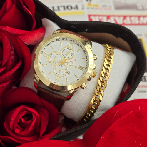 باکس هدیه مردانه ساعت رومانسون بند چرم به همراه دستبند