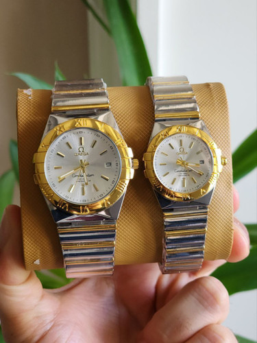 ست ساعت و دستبند و گردنبند ساعت دو تقویم فعال ماه و ایام هفته به همراه دستبند و گردنبند و حلقه استیل و جعبه کادویی و باتری یدکی