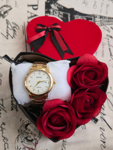 باکس هدیه مردانه ساعت سیکو دو تقویم فعال نمایش ایام هفته و روزشمار ماه بهمراه باکس و گل مصنوعی