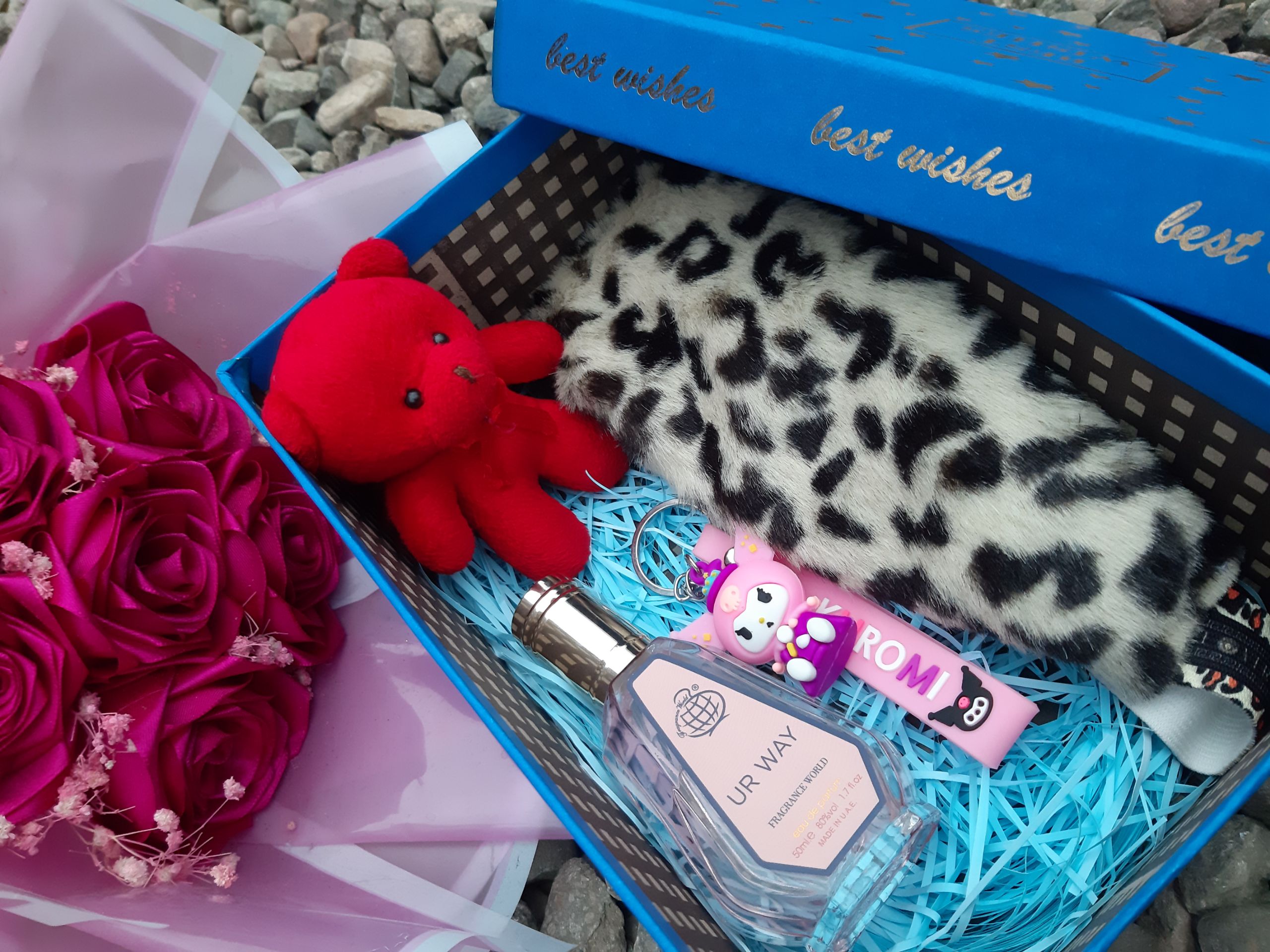 پک هدیه زنانه شیک و خاص شامل هد پلنگی خرس قرمز ادکلن جاسوییچی