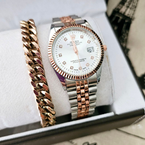 ست زنونه مردونه طرح رولکس دیت جاس قفل کلیپسی صفحه نگینی مقاوم در برابر آب بند اجری تقویم تلسکوپی