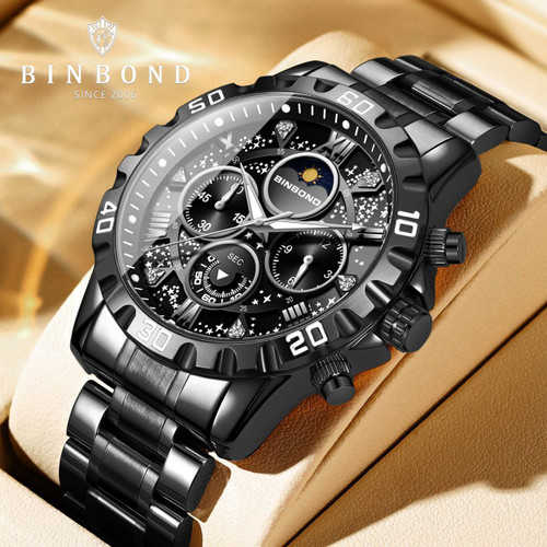 ساعت مچی مردانه بین باند الماسی bin bond صفحه کهکشانی کرنوگراف