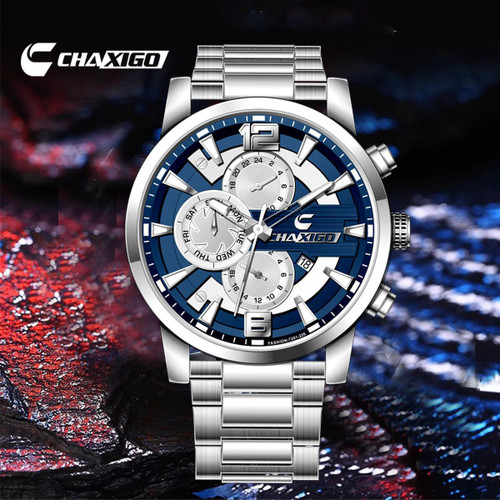ساعت بند استیل مردانه دارای کارت گارانتی صفحه شب نما روز شمار طرح کرنوگراف برند شرکتی کیفیت عالی بنداستیل ضخامت ۱۴میلی متر قطر صفحه ۴۰.۵میل ضدآب شیشه معدنی رنگ ثابت قفل کلیپسی موتور کوارتز