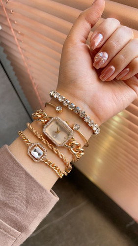 ست ساعت و نیمست زنانه ساعت به همراه ۴ عدد دستبند