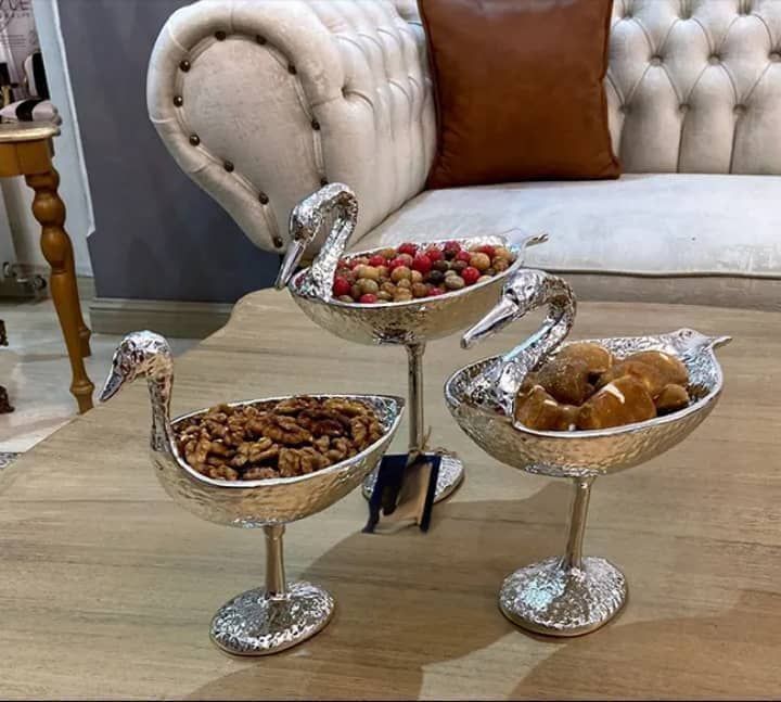 سرویس پذیرایی قو 😍👌🏻 جنس آلومینیوم رنگ ثابت✅ 3تیکه شامل : آجیل،شیرینی،شکلات 😍