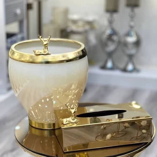 سطل و جای دستمال ریحان😍 جنس استیل و شیشه ای کریستال😍