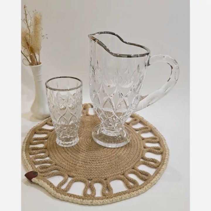 پارچ و لیوان کریستال 😍 ۶عدد لیوان و ۱ عدد پارچ لب نقره😍 ساخت ترکیه اصل✅