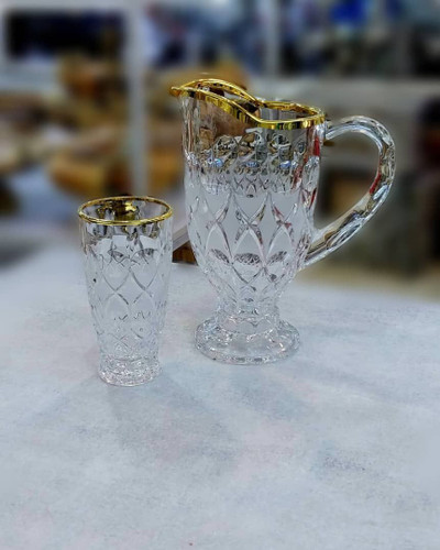 پارچ و لیوان کریستال 😍 ۶عدد لیوان و ۱ عدد پارچ لب طلا😍 ساخت ترکیه اصل✅