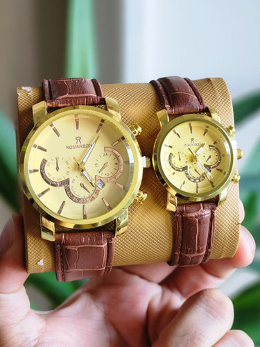 پرفروش ترین ست ساعت دونفره رومانسون بند چرمی طرح سه موتوره