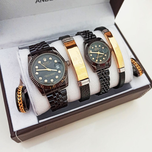 ست زنونه مردونه طرح رولکس دیت جاس قفل کلیپسی صفحه نگینی مقاوم در برابر آب بند اجری تقویم تلسکوپی