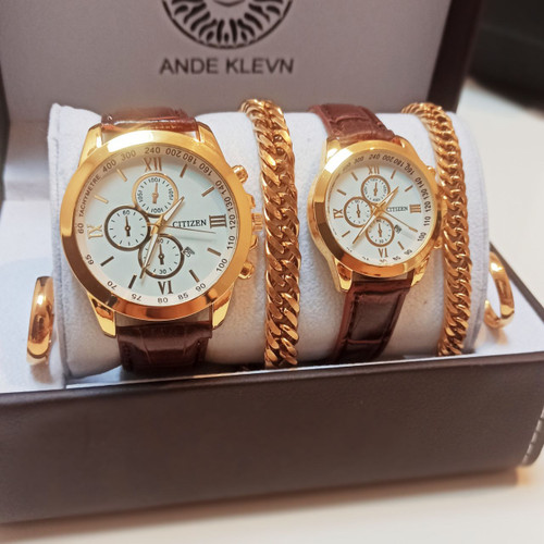 پرفروش ترین ست ساعت دونفره رومانسون بند چرمی طرح سه موتوره