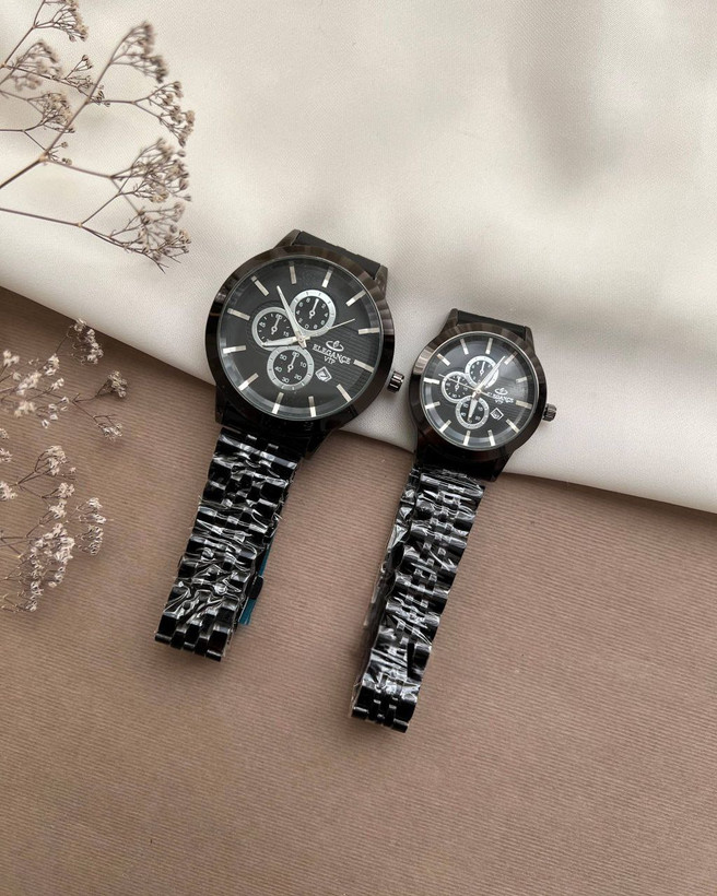 ست ساعت زنانه و مردانه الگانس تقویم فعال بهمراه جعبه کادویی و باتری یدکی