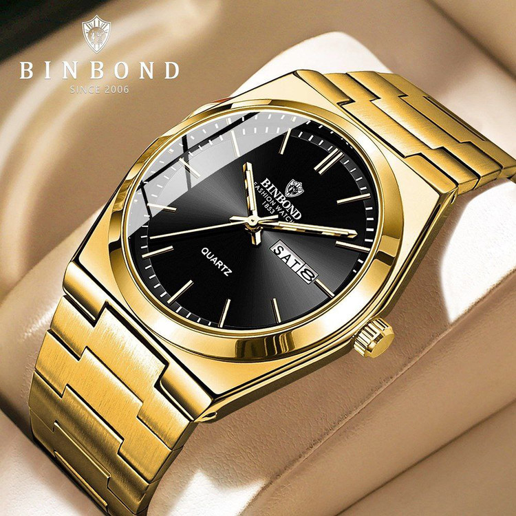 ساعت بین باند مدلی نو مناسب آقایان مقاوم دربرابر آب برندشرکتی اوریجینال کارت گارانتی دارای روز شمار ضخامت ۱۱میل قطر صفحه ۴۴میل ایام هفته بند استیل فولاد شیشه سافایر شب نما قفل دو پروانه موتور کوارتز