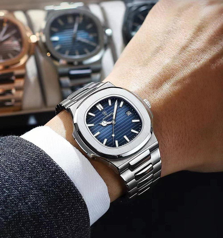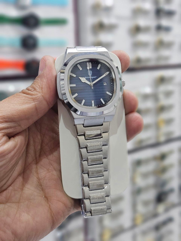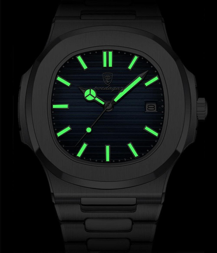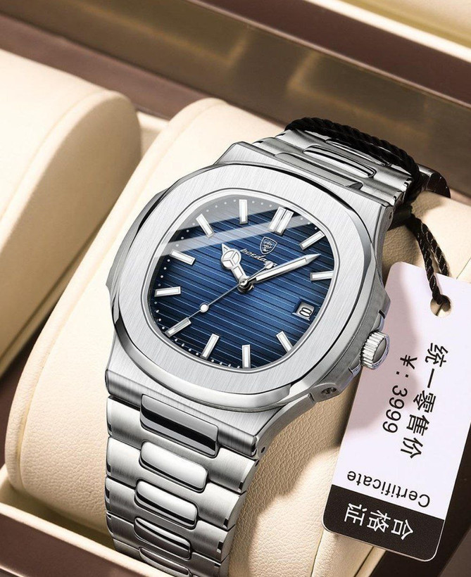 مشخصات کلی محصولپوداگار مربعی خاص برند شرکتی شب نما بند استیل مقاوم دربرابر آب شیشه معدنی رنگ ثابت قفل سگک دوپروانه ای موتور کوارتز
