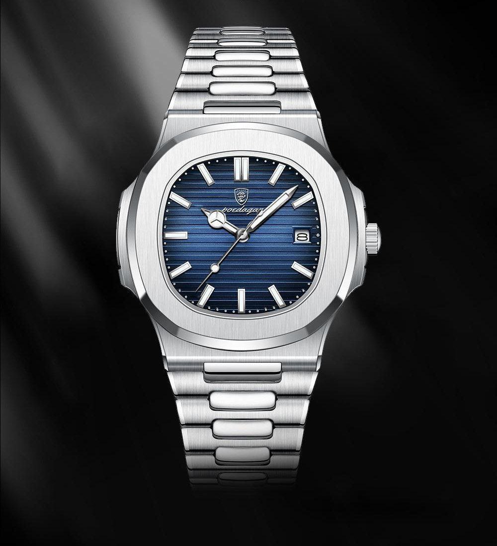 مشخصات کلی محصولپوداگار مربعی خاص برند شرکتی شب نما بند استیل مقاوم دربرابر آب شیشه معدنی رنگ ثابت قفل سگک دوپروانه ای موتور کوارتز
