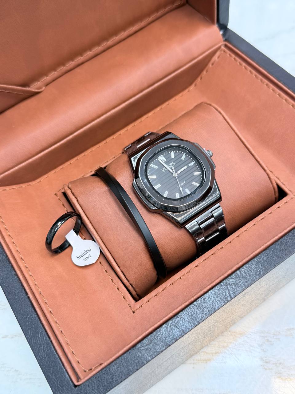 دستهبندی: ست ساعت و نیمست مردانهبرچسبها : هدیهکادوبند: استیل🎁جعبه: دارد(با جعبه داخل عکس ارسال نمی شود)
