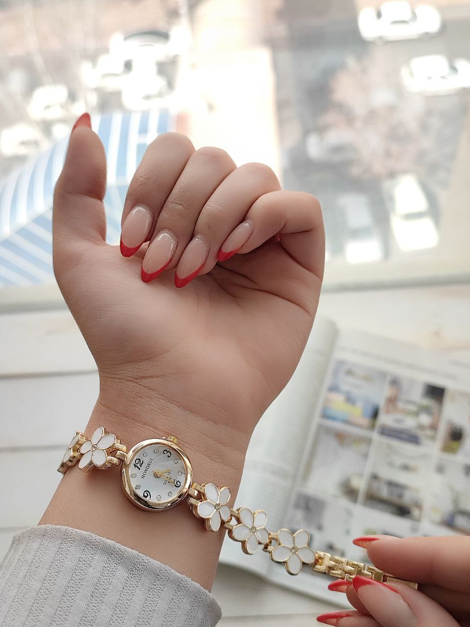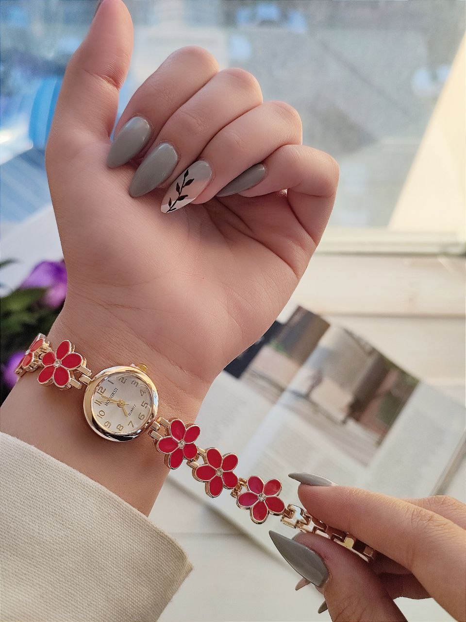 ساعت زنانه بابونه HONGRUI 2002309078 ساعتی با طراحی گلهای رنگارنگ، ظرافت و زیبایی زنانه.