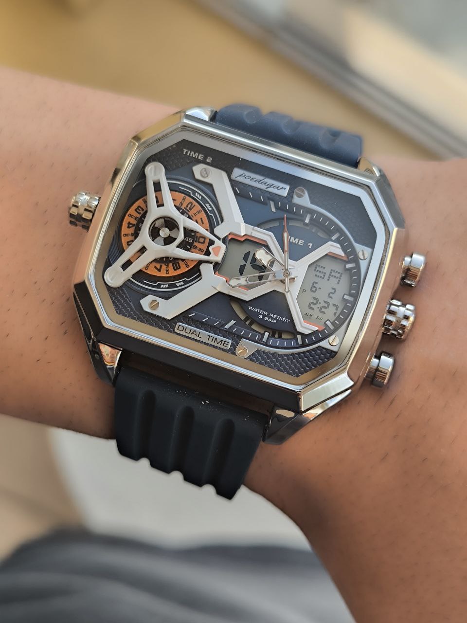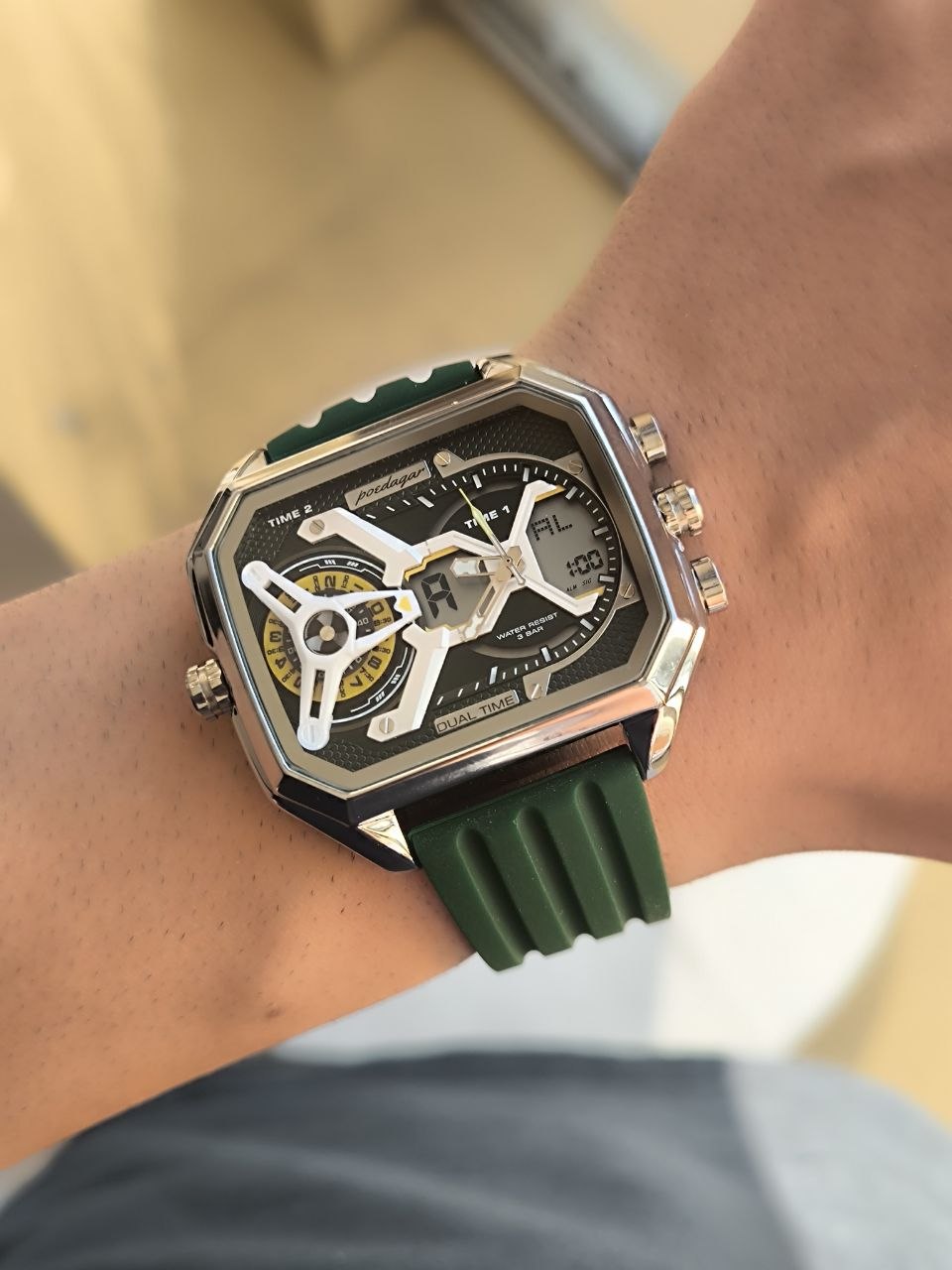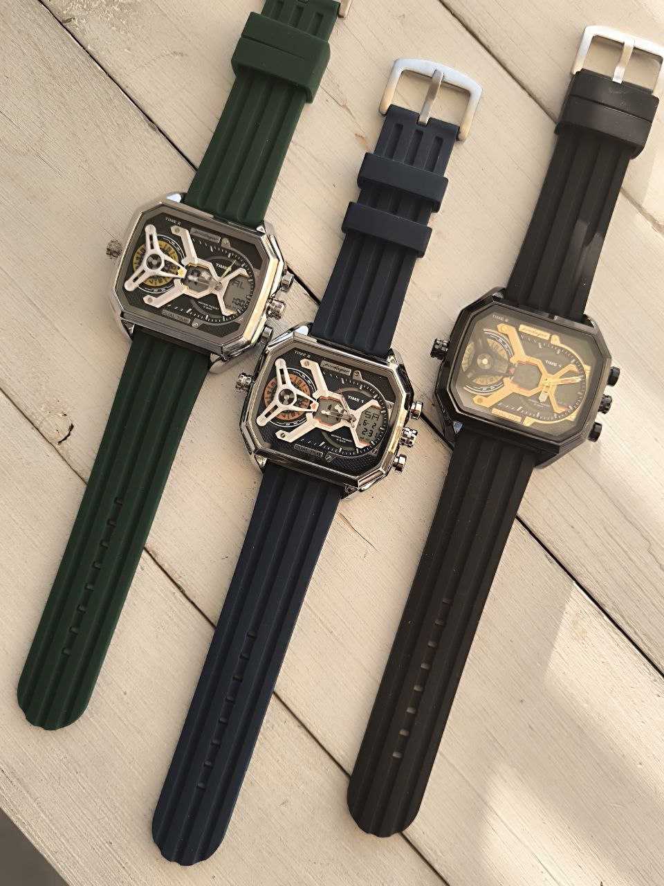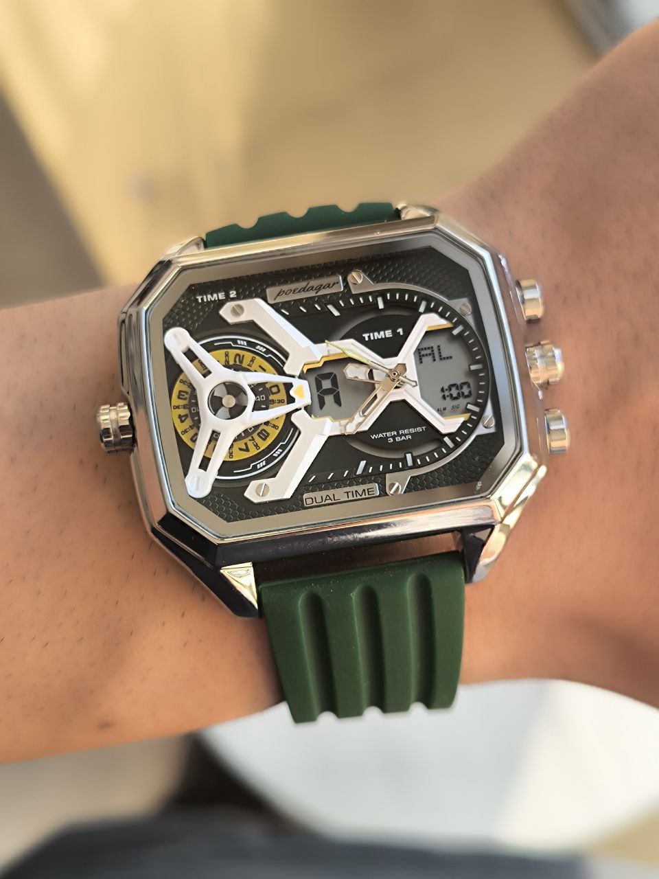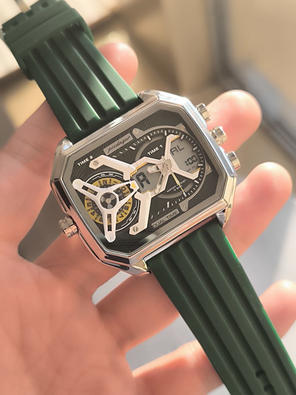 دستهبندی: ساعت مردانهبرچسبها : کادوخفنساعت جدیددوزمانه: بلهآلارم: داردچراغدار: بلهرنگبندی: مشکی_سبز_سرمه ای