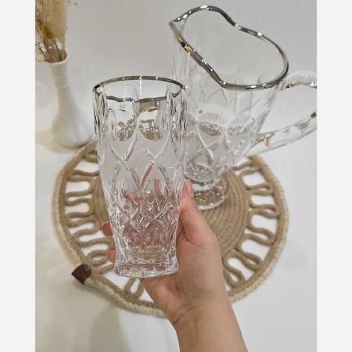 دستهبندی: لوازم خانگیمشخصات کلی محصول: پارچ و لیوان کریستال 😍 ۶عدد لیوان و ۱ عدد پارچ لب نقره😍 ساخت ترکیه اصل✅