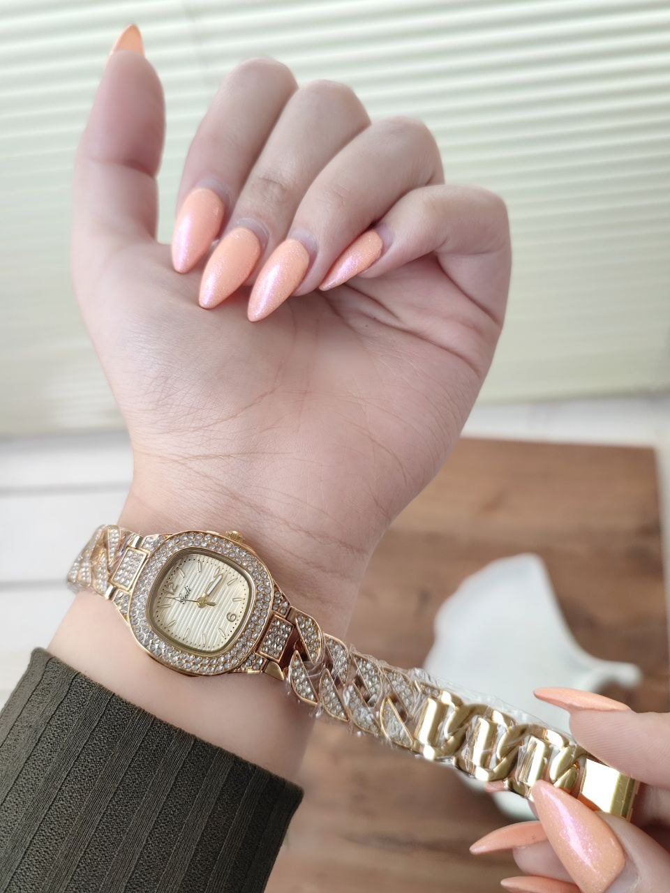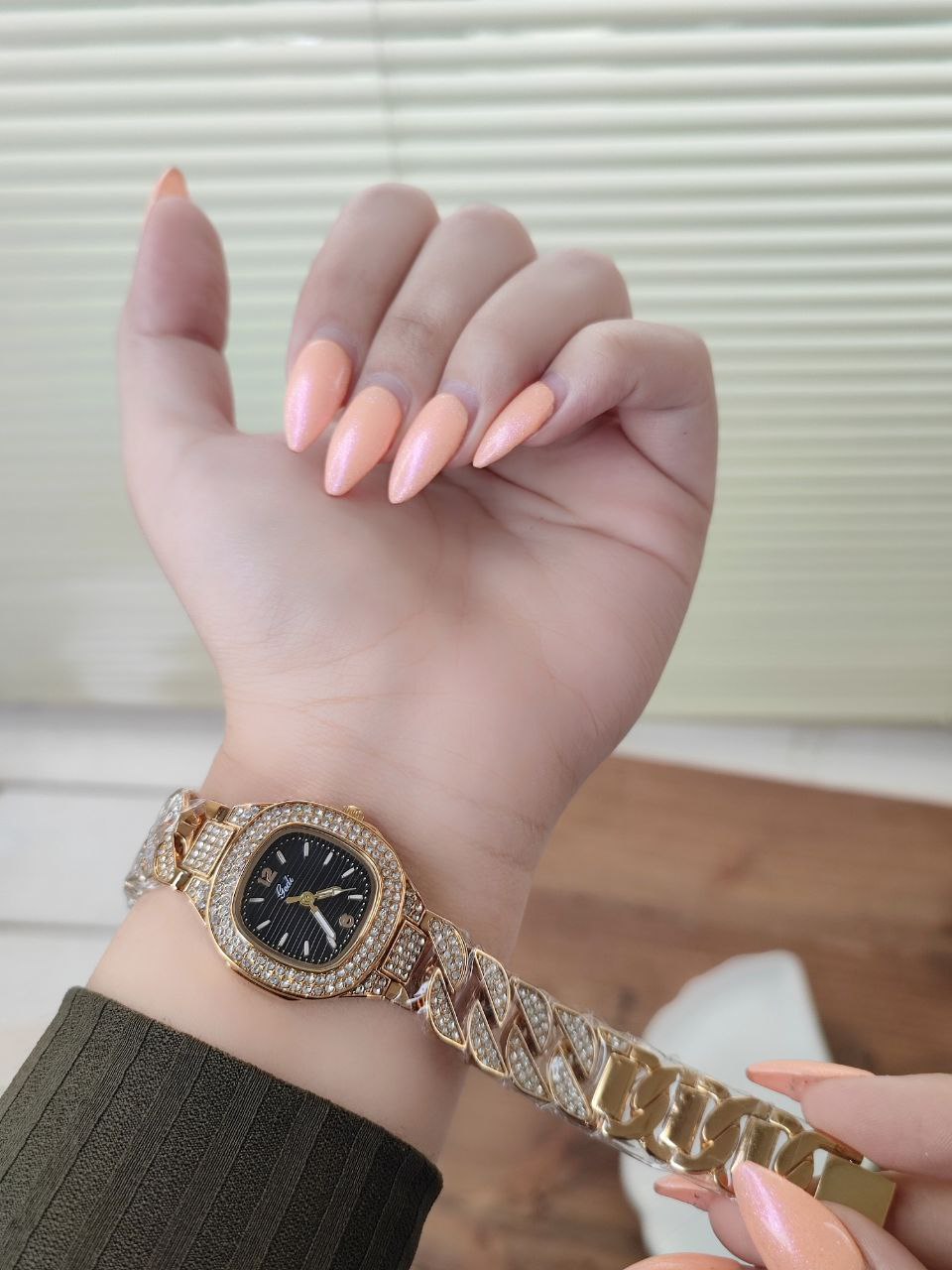 ساعت زنانه مارک GEDI مدل 52103طراحی شیک با بند زنجیری و نگین‌های درخشان؛ ایده‌آل برای مجالس.