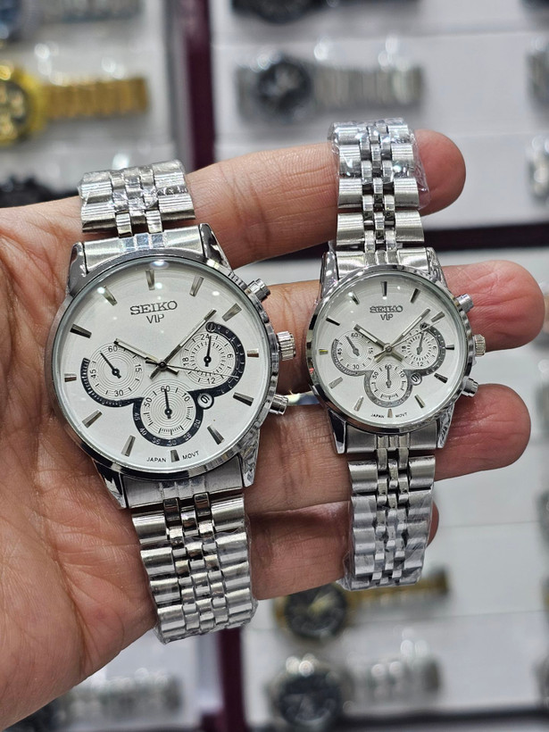 ست ساعت زنونه و مردونه سیکو vip دارای روزشمار طرح کرنو گراف قفل کلیپسی موتورکوارتز بنداستیل