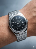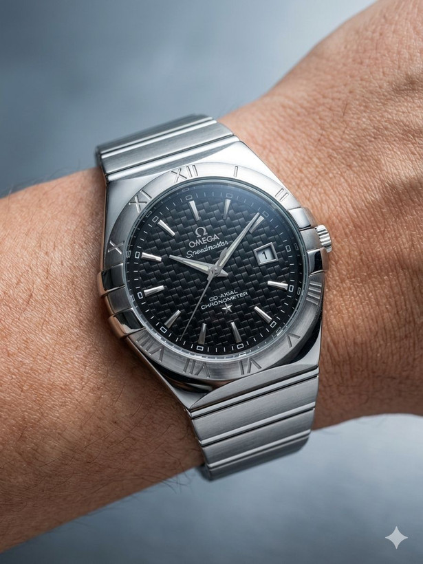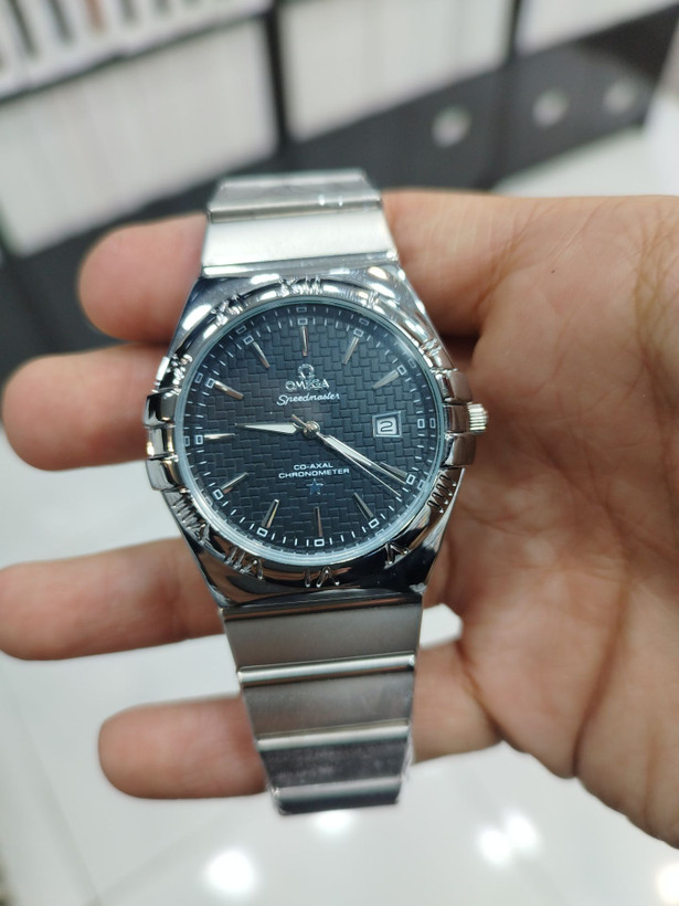 کد  2406 مردانه برند امگا OMEGA باکیفیت بند فلزی سنگین جنس خوب طراحی خاص و زیبا موتور کوارتز قفل پروانه‌ ای دارای روز شمار