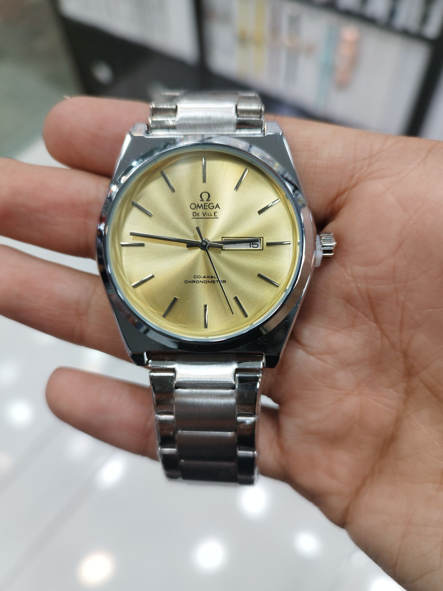 کد  2418 مردانه برند امگا OMEGA باکیفیت بند فلزی سنگین جنس خوب طراحی خاص و زیبا موتور کوارتز قفل پروانه‌ ای دارای روز شمار