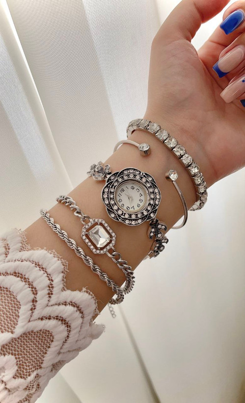 ست کامل پنج تیکه زنانه ساعت به همراه ۴ عدد دستبند