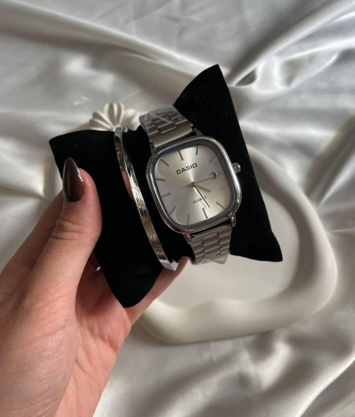 ساعت کاسیو به همراه دستبند زنانه بهمراه جعبه کادویی و باتری یدکی