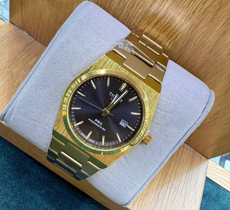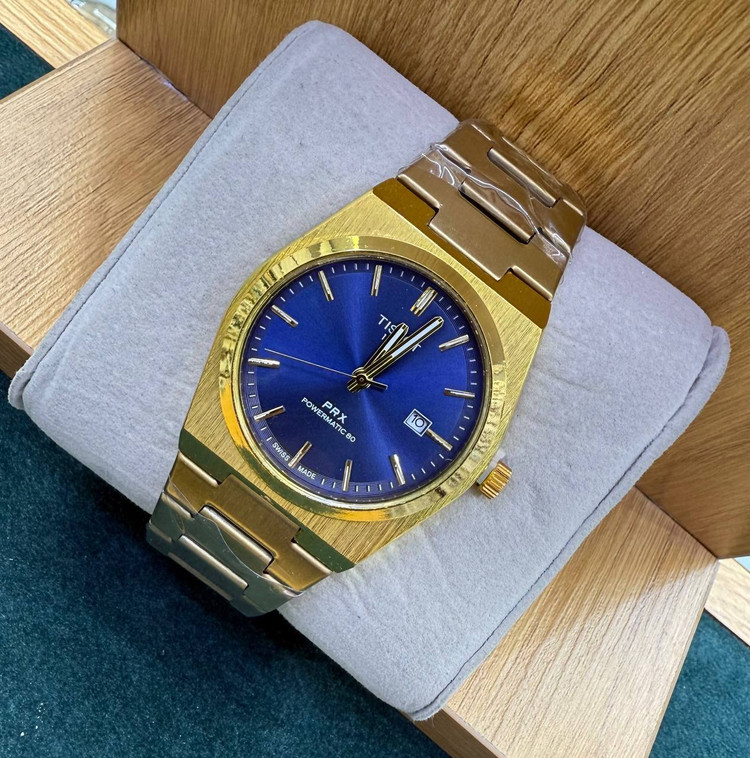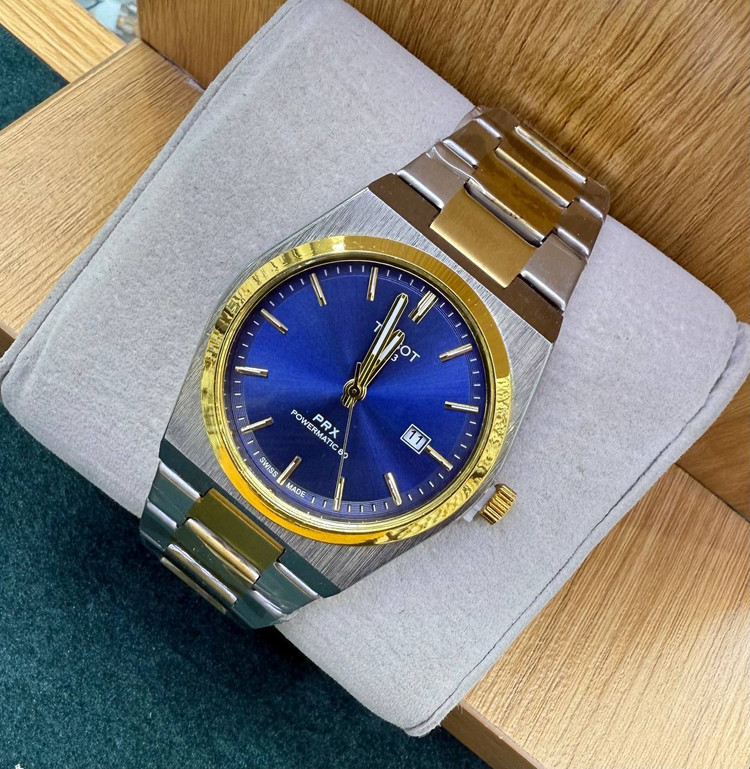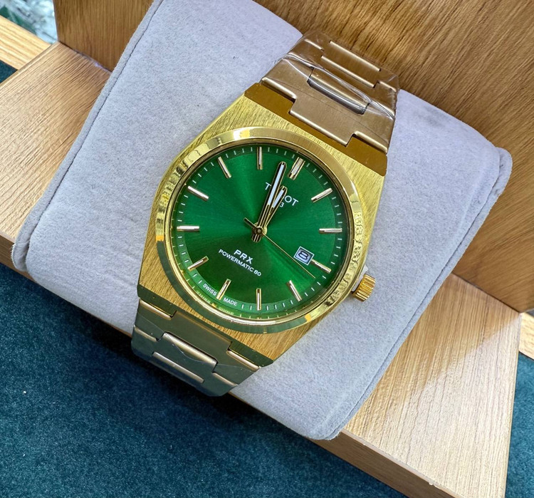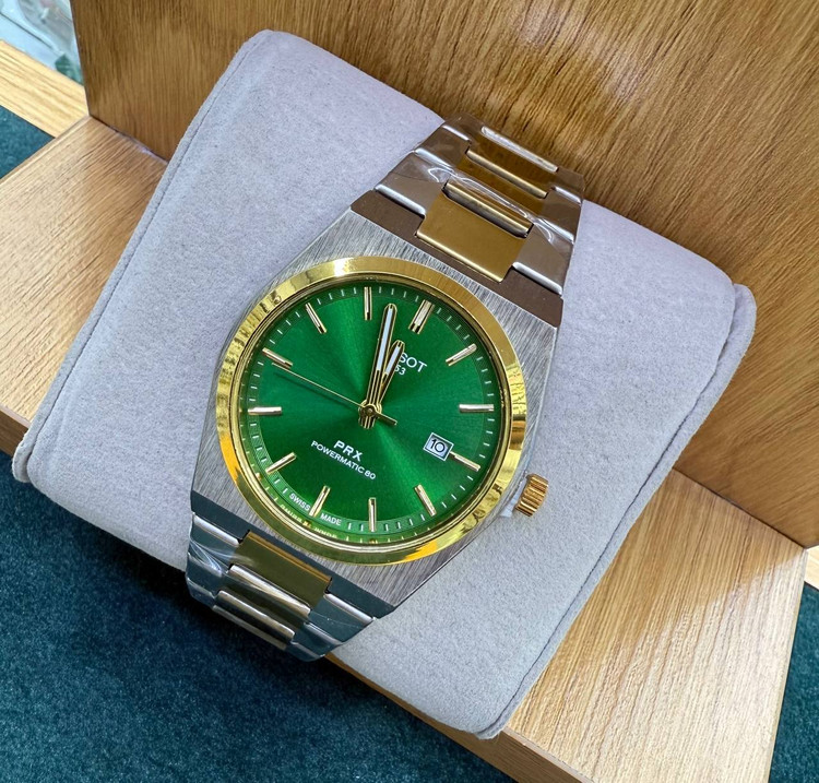 ساعت مردانه تیسوت prx تاریخدار قفل پراونه ای شب نما طرح اصلی کیفیت عالی در رنگهای شاد
