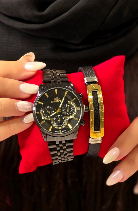 ست ساعت و دستبند جدید مردانه بند استیل و رنگ ثابت