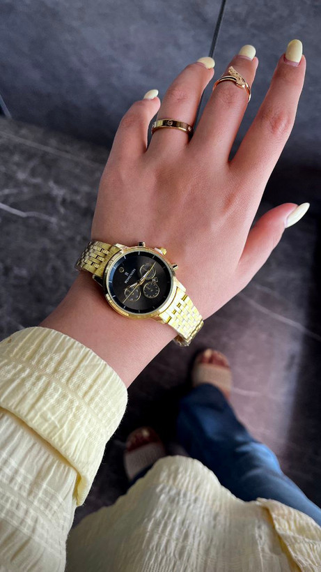 ساعت زنونه رومانسون دارای روز شمار قفل کلیپسی بند استیل موتورکوارتز طرح کرنوگراف رنگ طلایی