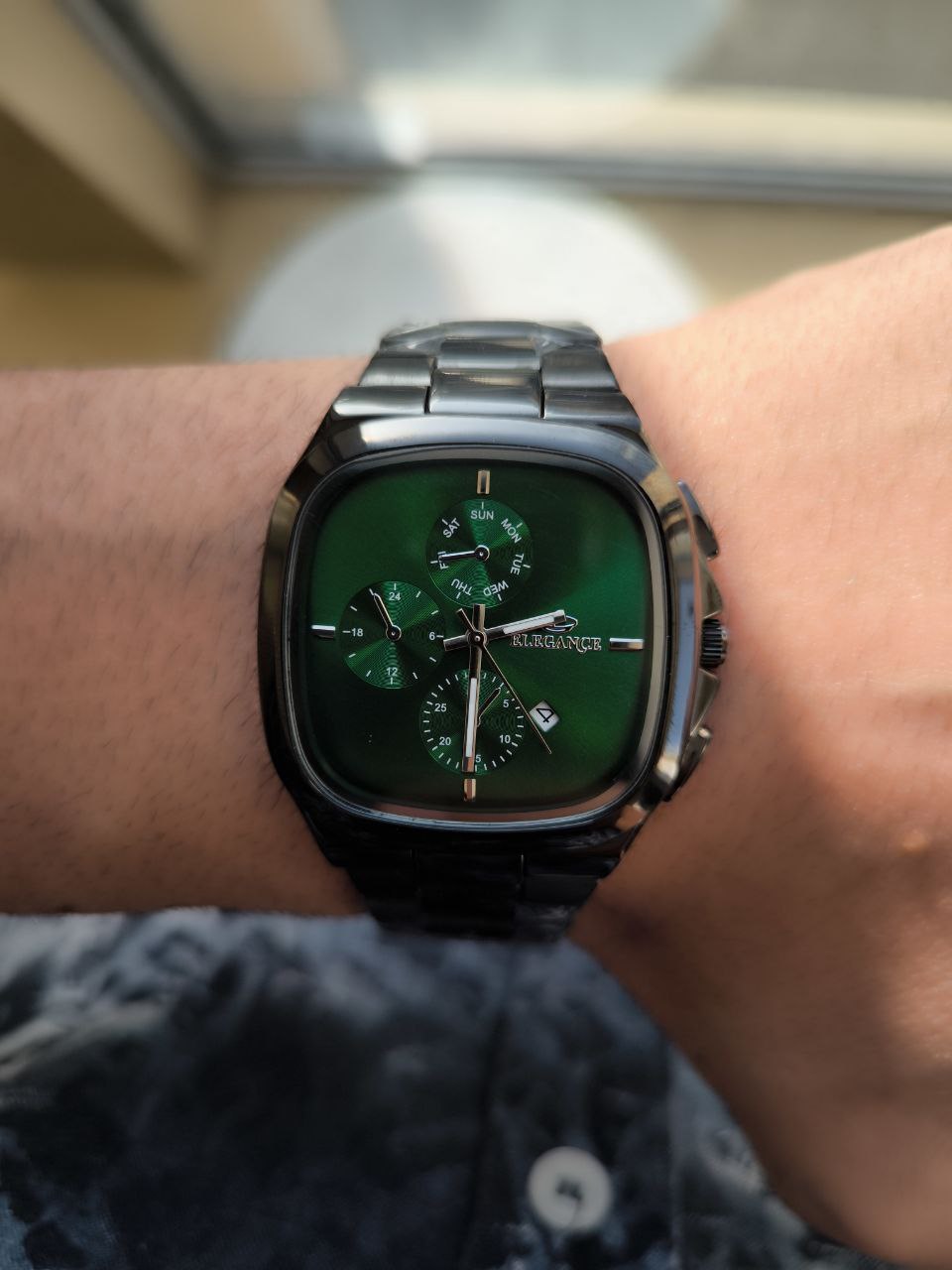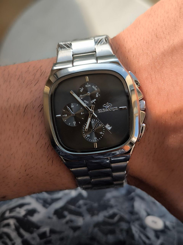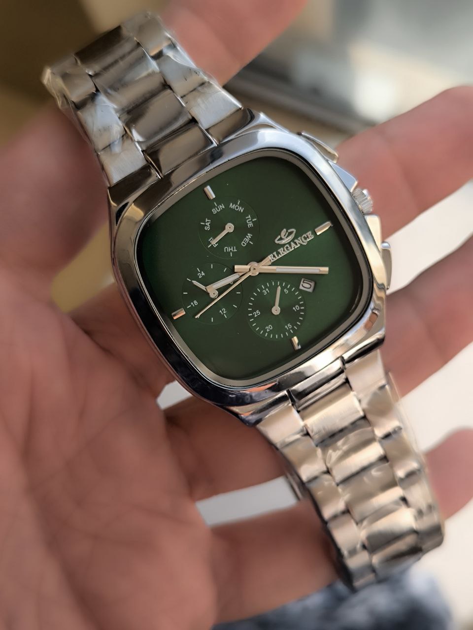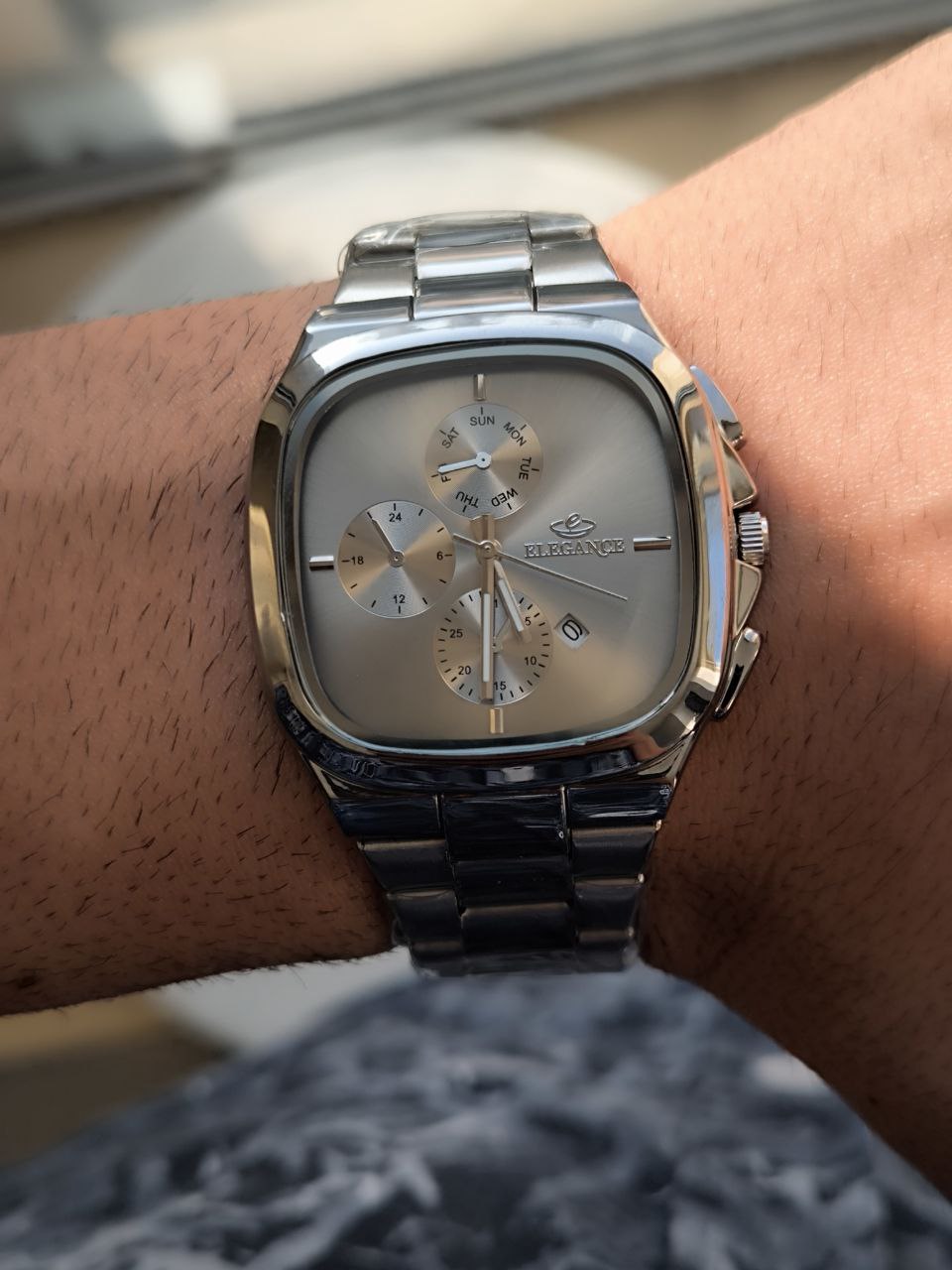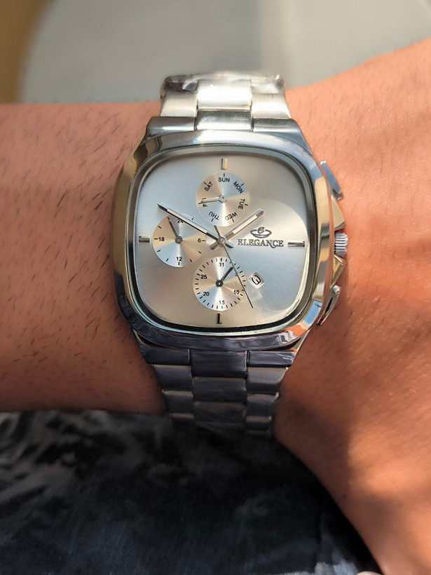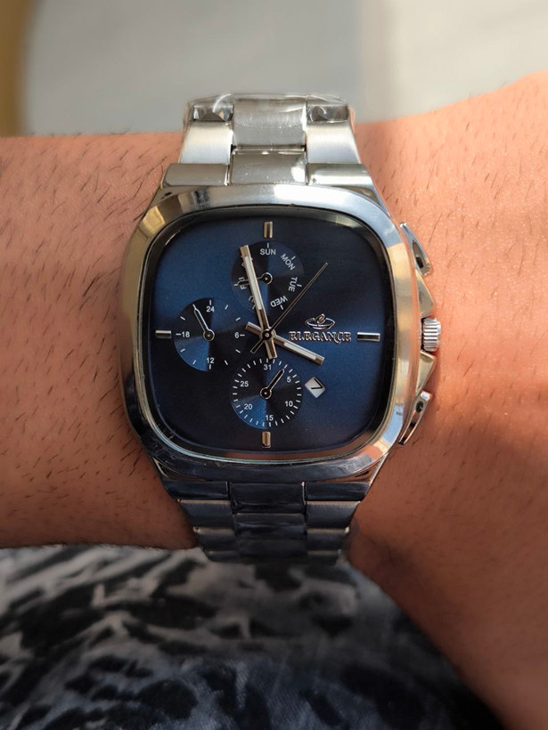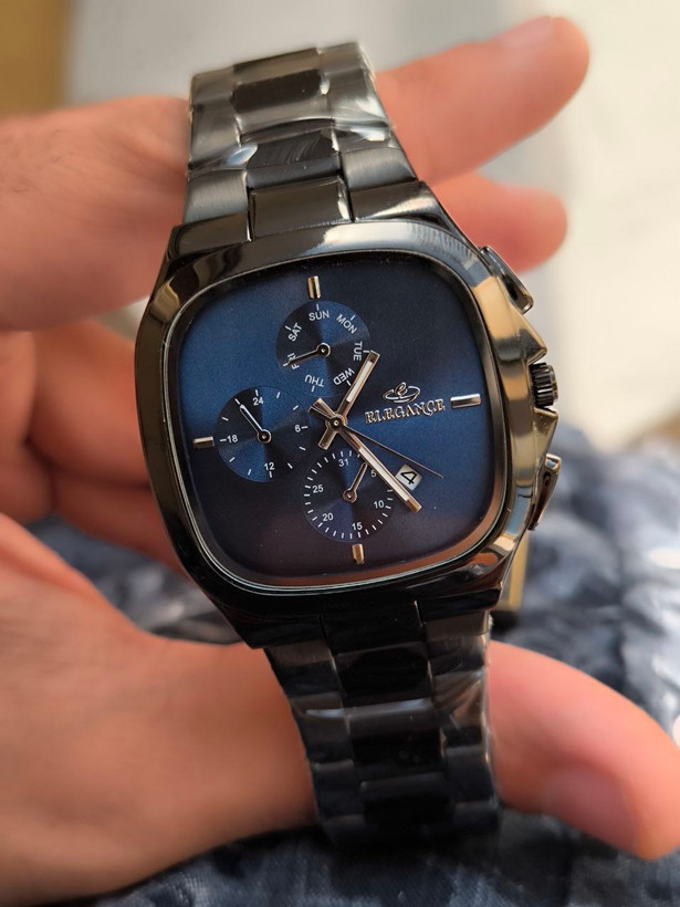 ساعت مردانه فلزی مارک الگانس 110012008بسیار پرفروش طرح سه موتوره رنگ ثابت تقویم دار دوقفله مخفی