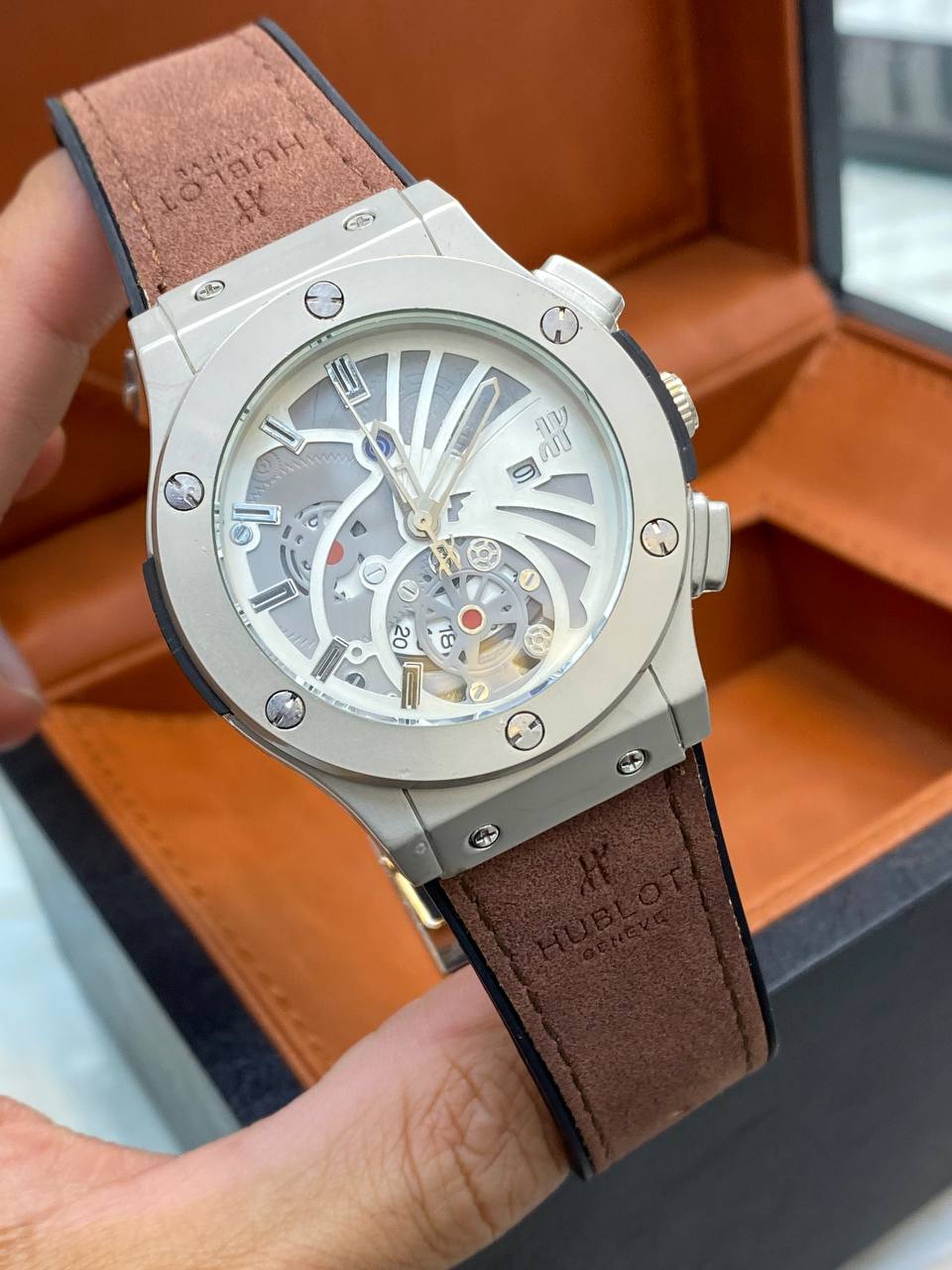 ساعت مردانه هابلوت طرح اتومات جدید تقویم دار رنگ بندی متنوع قفل طرح اصلی و کلیپسی