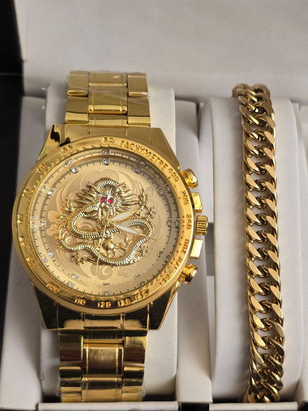 ست مردانه ساعت و دستبند و گردنبند استیل و حلقه( سایز ۶ تا ۱۰) بهمراه جعبه کادویی و باتری یدکی