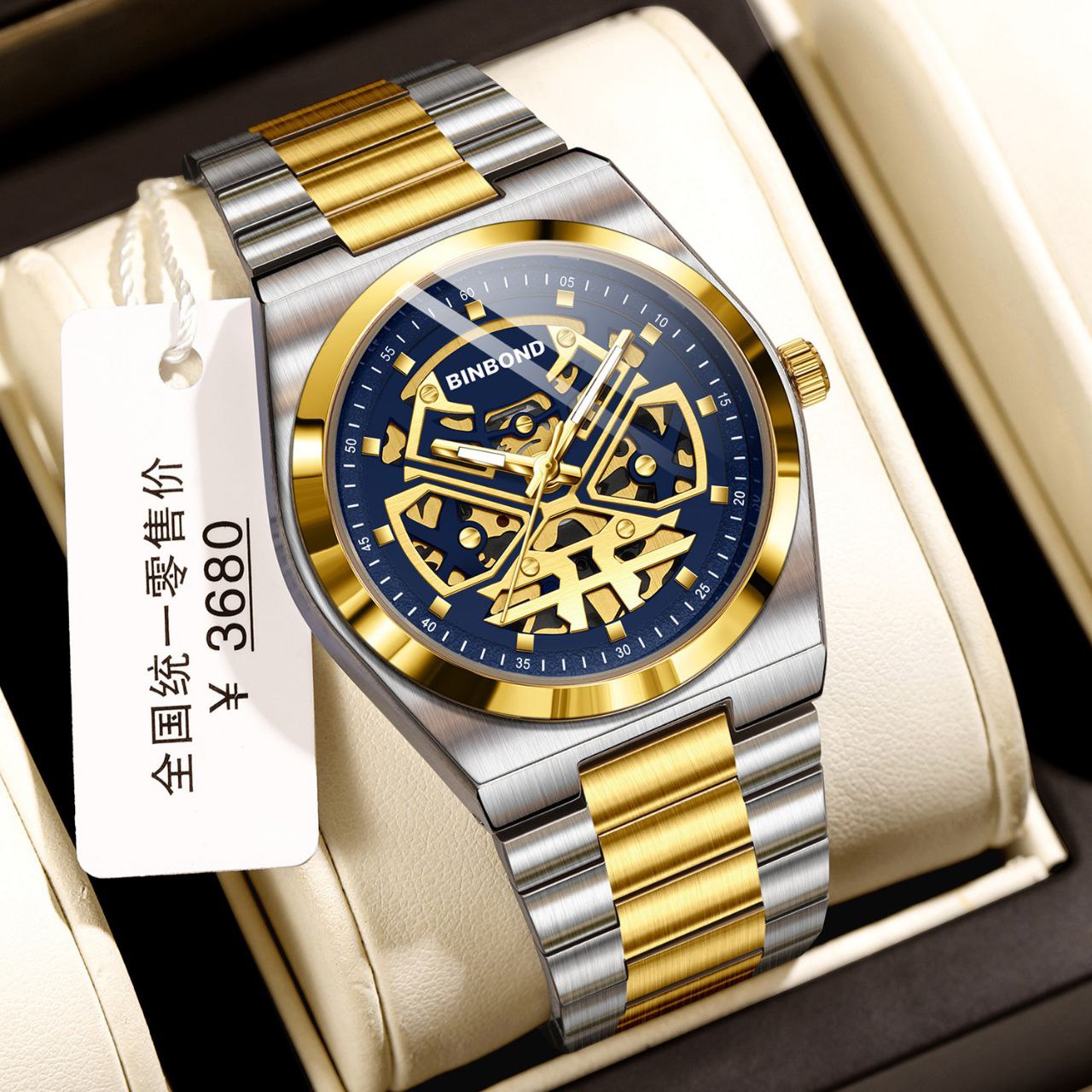 BOND 《highe quality》 Original watch ⌚️بین باند مدلی نو مردونه پرطرفدار مقاوم دربرابر آب برندشرکتی سبک تجاری شب نما موتور نمایان بند استیل فولاد شیشه سافایر قفل دو پروانه موتور PE30 آرام گرد