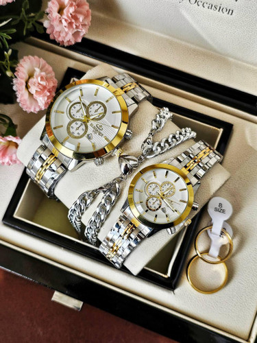 ست دونفره ساعت و دستبند و حلقه زنانه و مردانه