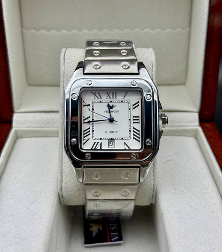 ساعت مردانه پوداگار مربعی خاص برند شرکتی اوریجینال عقربه شب نما بند استیل قطر صفحه ۳۴ میل ضدآب تا عمق بالا شیشه معدنی رنگ ثابت قفل سگک دوپروانه ای موتور کوارتز