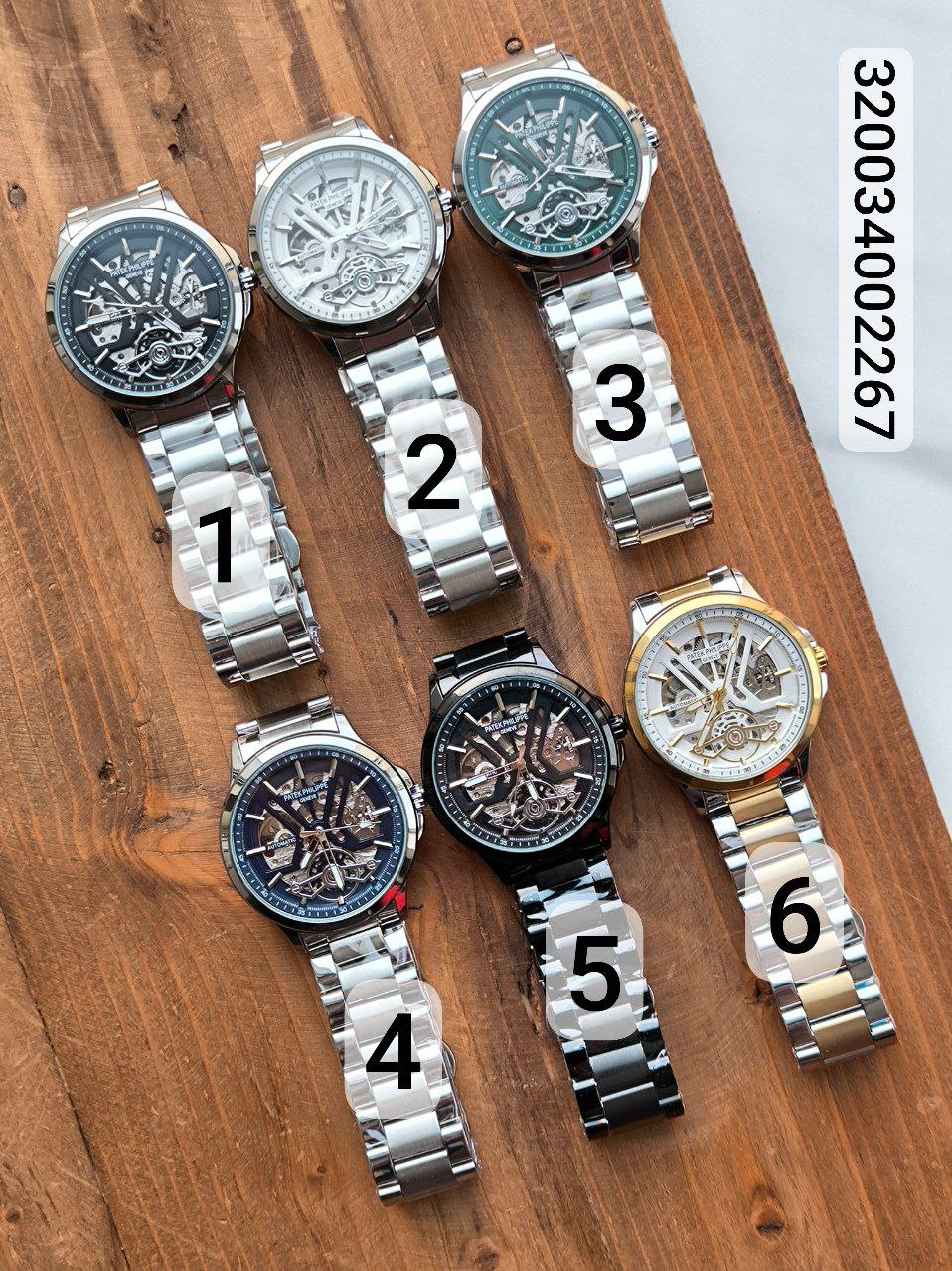 ساعت مردانه اتومات patek philippe اتومات بدون نیاز به باطری رنگ ثابت پشت شیشه ای دوقفله مخفی